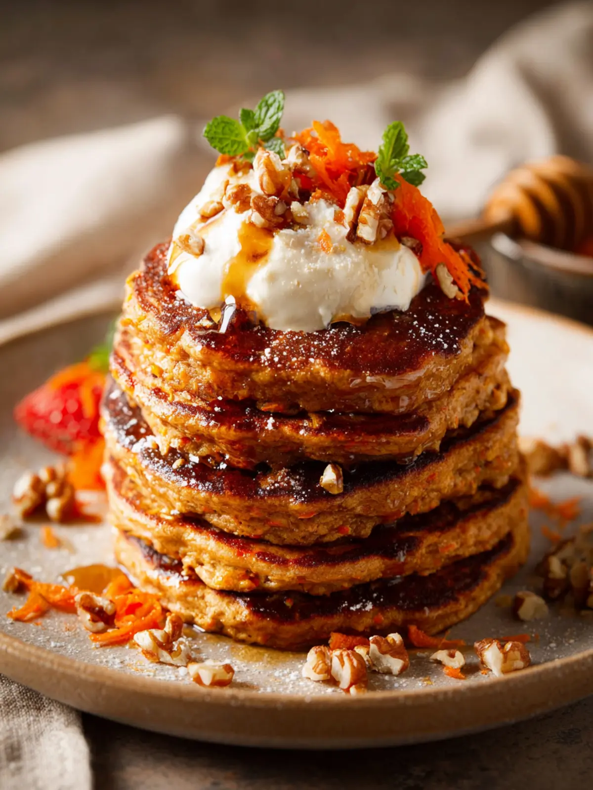 Nutritious Twist: Packed with wholesome ingredients like carrots and walnuts, these pancakes offer a nutritious boost to your morning routine. Who knew indulgence could be healthy too?