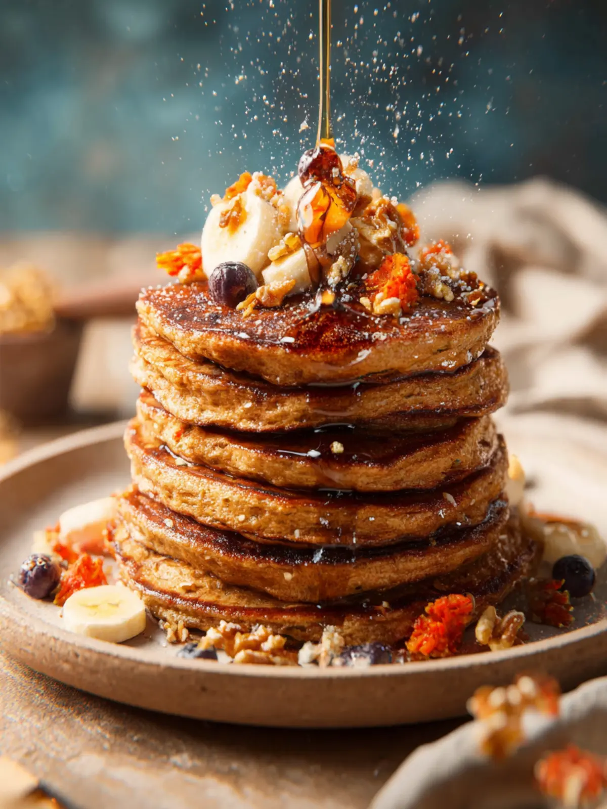 Maple Syrup: Don’t skimp on the maple syrup! A warm pour over your pancakes will create that classic breakfast vibe and harmonize beautifully with the carrot flavor.