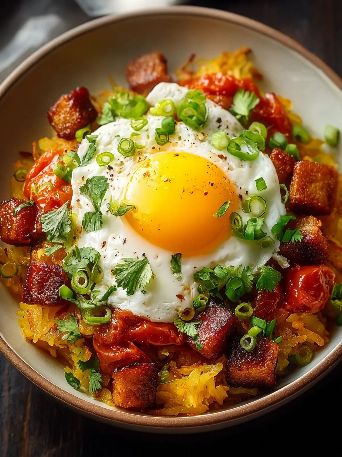 - Herbs: Fresh herbs like cilantro or green onions sprinkle a bright note over the hearty hash browns.
