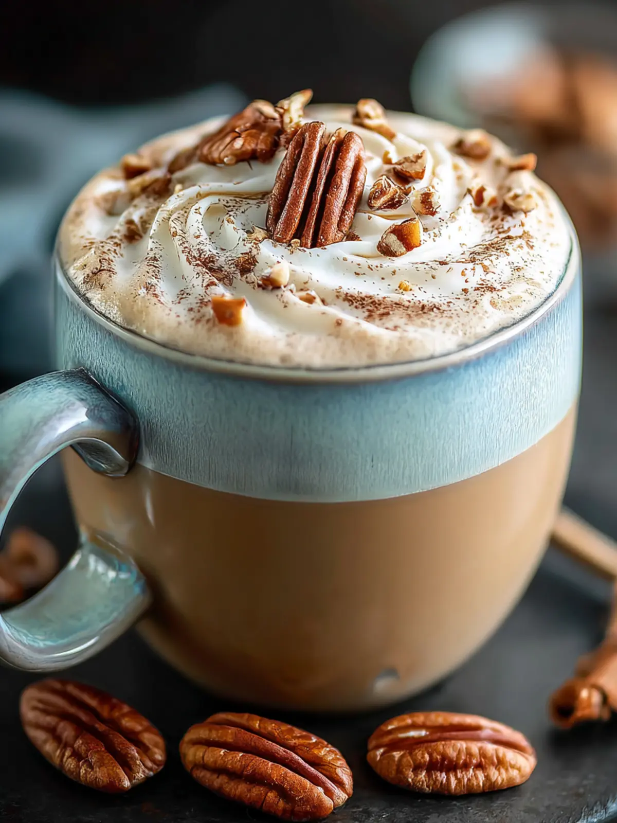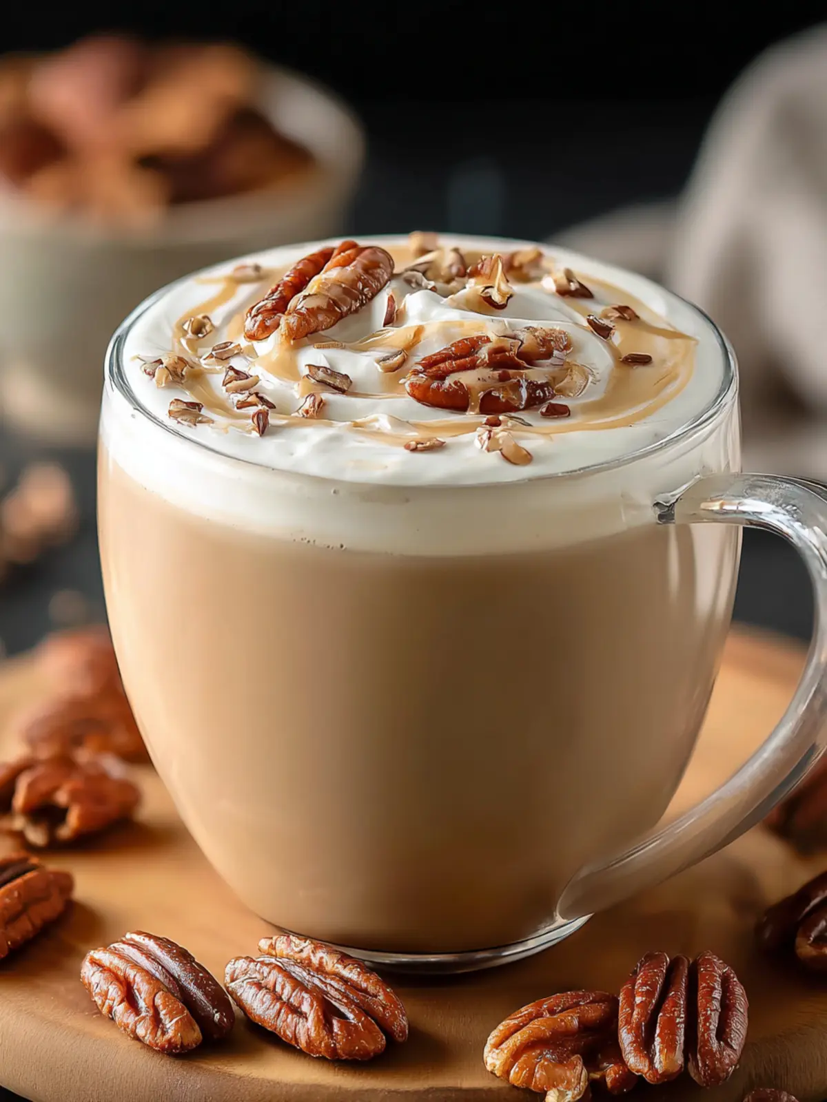 - Sprinkle chopped toasted pecans over your latte and add whipped cream if desired.