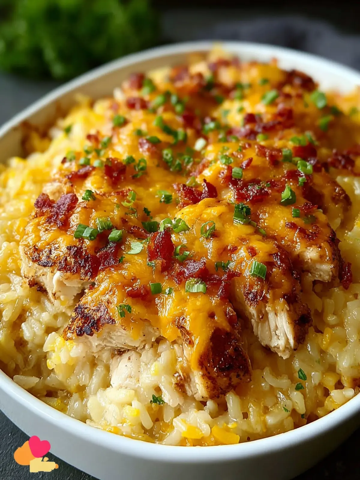 A hearty and creamy chicken and rice casserole that is easy to make and perfect for a family dinner.