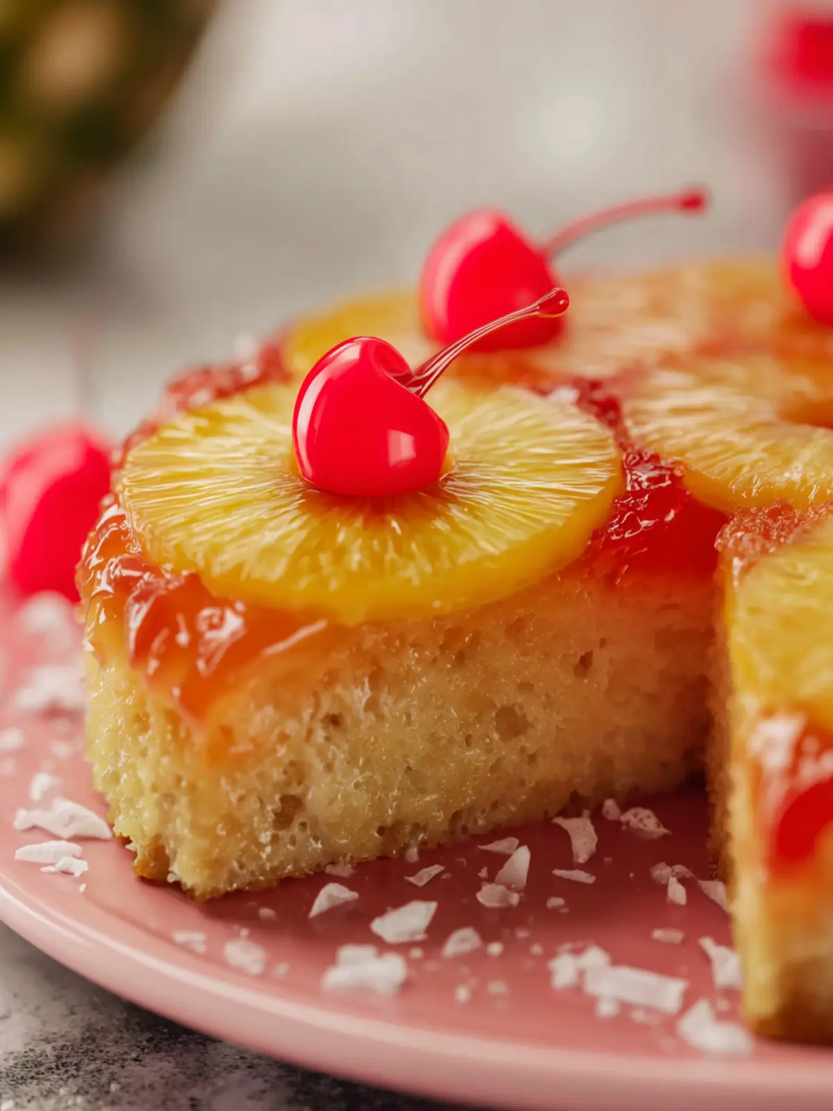 This delightful Pineapple Upside-Down Cake is a classic dessert that features caramelized pineapple slices and maraschino cherries atop a moist cake.