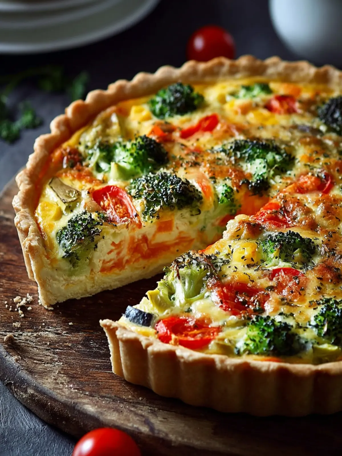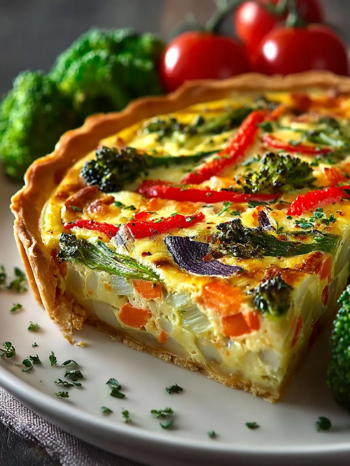 A delicious vegetable quiche made with fresh ingredients, perfect for a brunch or dinner.