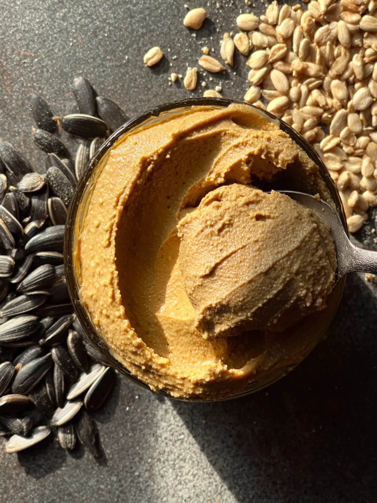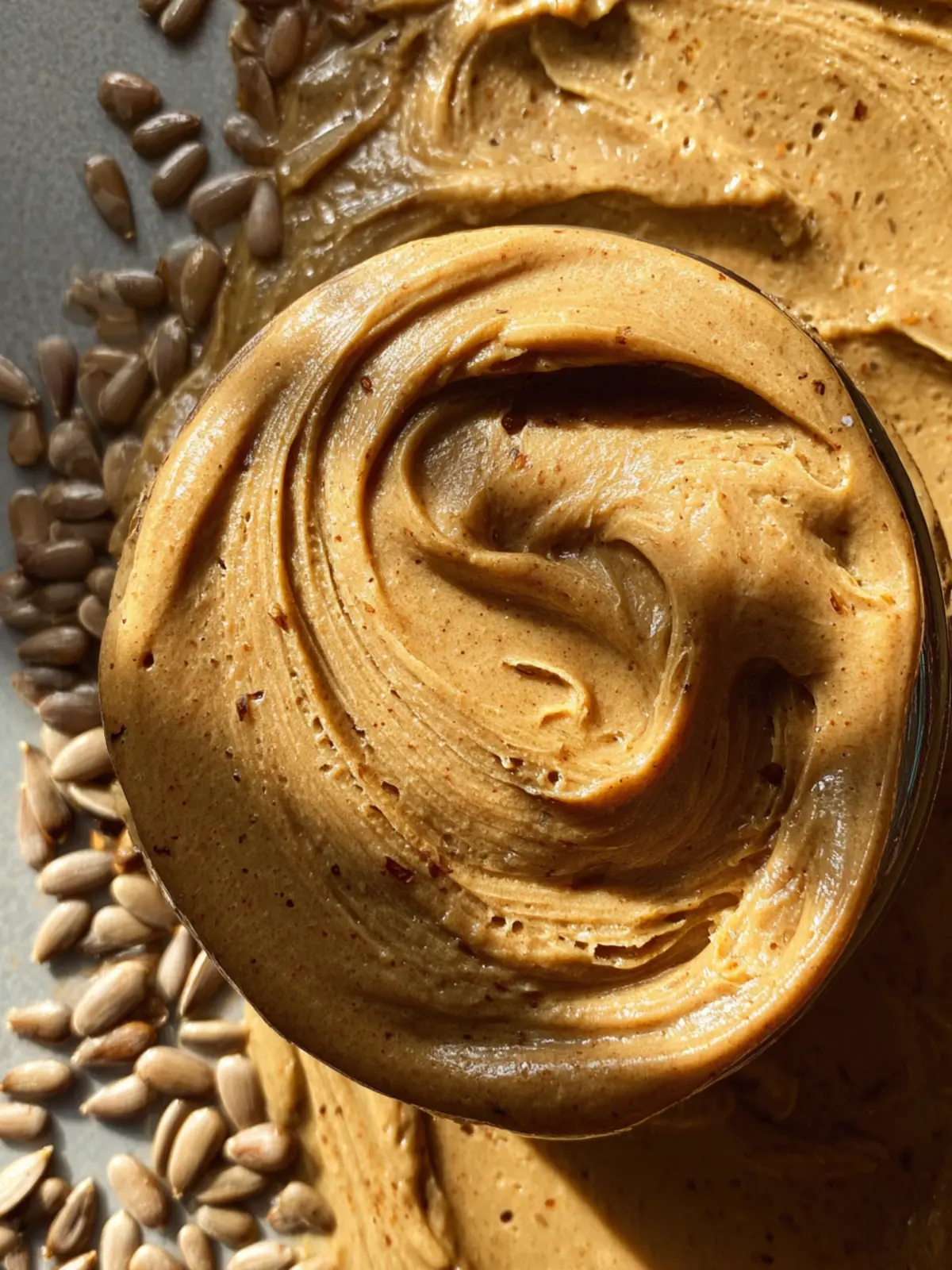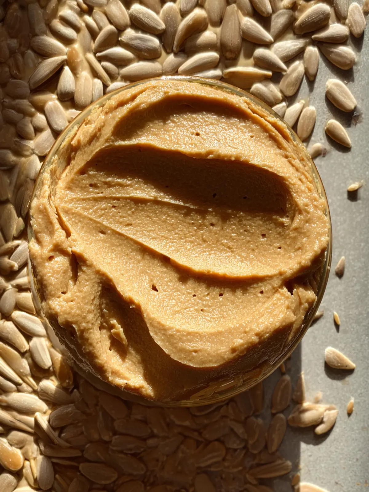 A creamy sunflower seed butter made from roasted sunflower seeds.