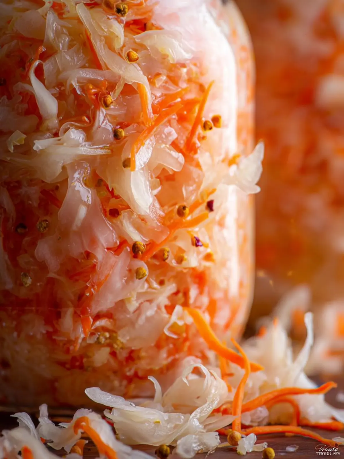 • Carrots: Adding grated carrots introduces a slight sweetness and beautiful color to the sauerkraut. It’s a traditional addition that not only enhances taste but also provides essential nutrients.